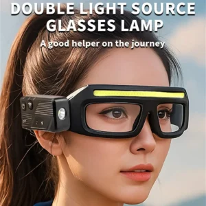 Arbeitsbrille mit Leuchte, Augenschutzbrille mit eingebauter Doppel-Beleuchtung (1x XTE LED für Spotlicht & 40x COB für den Nahbereich), Spotlicht um 90° schwenkbar, mit Gesten-Steuerung, Gewicht nur 98g