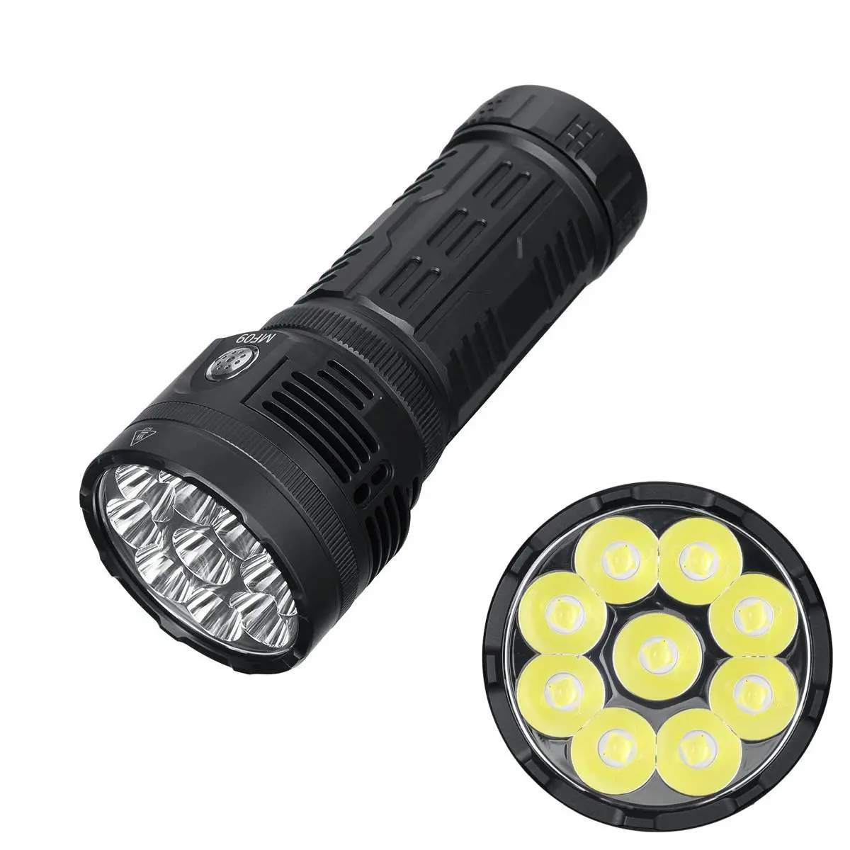 ASTROLUX MF09 – Hochleistungstaschenlampe mit 26.000 Lumen und 600 Meter Reichweite, 9x XHP50.2 LEDs, 1x 46950 Li-Ionen Akku mit 32.000mAh (ausdauernd wie 8x 21700 Akkus!) inkl., thermoelektrischer Kühler + Ventilator, PowerBank-Funktion, in schwarz, grün oder silber