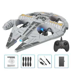 DWI ES101 Pro – Millennium Falcon Quadrokopter Drohne mit 2.4GHz EPP 6-Achsen Gyroskop ca. 60m Reichweite 360° Stunt-Flips, optional mit einem oder zwei Akkus