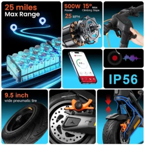 CUNFON RS500 – 9,5 Zoll E-Scooter, Elektro-Roller mit 500 Watt Motor, 48V 13Ah 624Wh Akku, Höchstgeschwindigkeit 40km/h, Reichweite 40km, max. Last 100kg, 9,5 Zoll Reifen, mit Straßenzulassung (ABE zertifiziert)