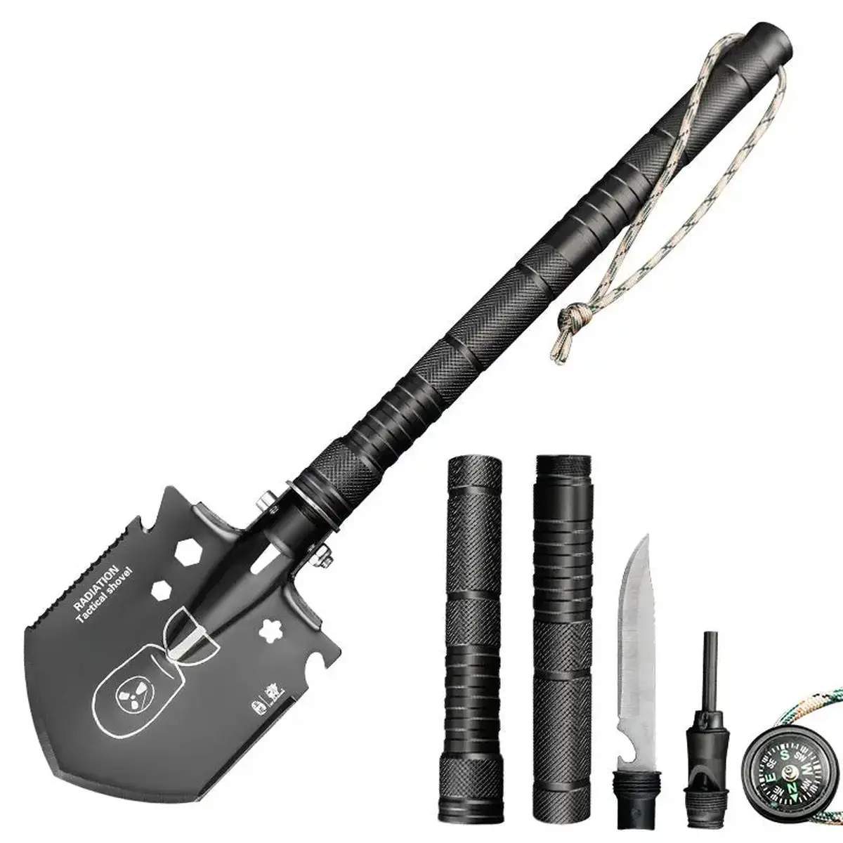 OUTDOORS RADIANT X (GBC-62B) – Outdoor Survival Multitool: Schaufel (mit Sägel, Schneide, Stern-/Sechskant-Schraubenschlüssel, Dosenöffner), Messer mit Dosenöffner, Feuerstahl, Kompass, Signalpfeife, , Gewicht nur 395g