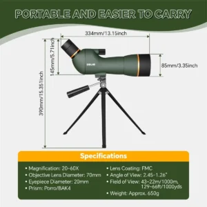 ESSLNB ES4038 – 20-60×70 Zoom HD Spektiv mit FMC Linse, BAK4 Prisma, mit Smartphone-Halter und Tischstativ, ideales Monokular für Vogelbeobachtung u.ä.