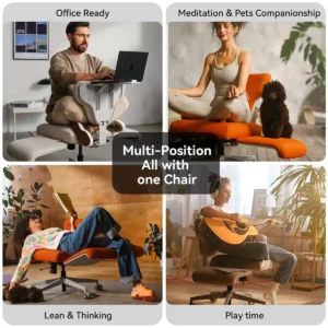NEWTRAL Freedom-X-FP – lehnenloser Arbeitsstuhl, für rückenschonende Haltung bei der Arbeit (Computer, Design, ect.), mit verstellbaren Laptop-Tablett in 3 Positionen